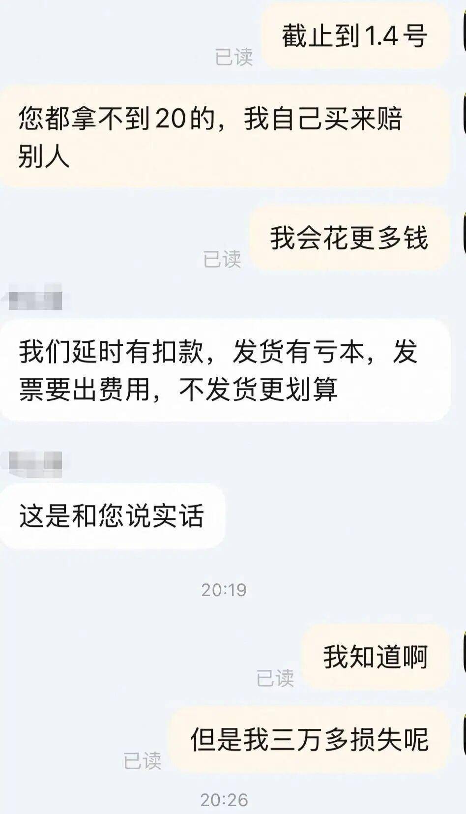 张女士与商家聊天记录 商家直言“不发货更划算” 图据受访者“难道因为银价上涨,赚的钱少了,口碑和诚信都不要了吗?”张女士又气又无奈。她告诉记者,该平台规定,单日同一商家因缺货拒绝发货,赔付上限仅500元,这样的赔付标准完全无法弥补她的损失。张女士认为,商家刻意拖延发货时间,就是想等银价回落再履约,或是以此要挟消费者主动取消低价订单,将市场风险转嫁给消费者,严重损害了消费者的合法权益。她希望商家能遵守合约,尽快完成剩余货品的发货。在双方沟通中,面对张女士提出的数万元亏损指控,商家则是表示“与我们没有关系,您拍的所有订单,都是待发货,我们是让您退款,用不到您一分钱。”记者梳理微博、小红书、抖音等社交平台的相关话题发现,有许多关于网购白银遭遇骗局的吐槽,相关话题下的留言、分享累计超千条。发帖者既有试水小额投资的普通消费者,也有投入数十万的资深投资者;遭遇的问题除了假货泛滥、延迟发货,还包括货不对板、鉴定证书造假、平台售后推诿等。不少网友在评论区分享维权经验,也有人无奈表示“吃一堑长一智,再也不敢网购贵金属”。